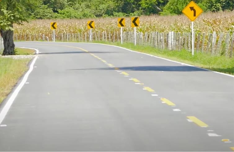 • Señalización vial horizontal y vertical, defensas metálicas y demarcación.