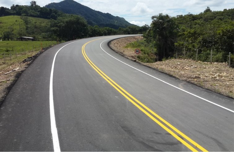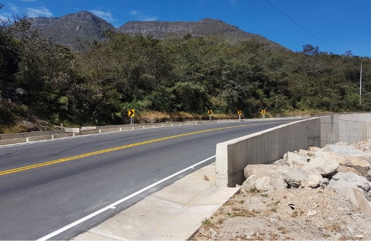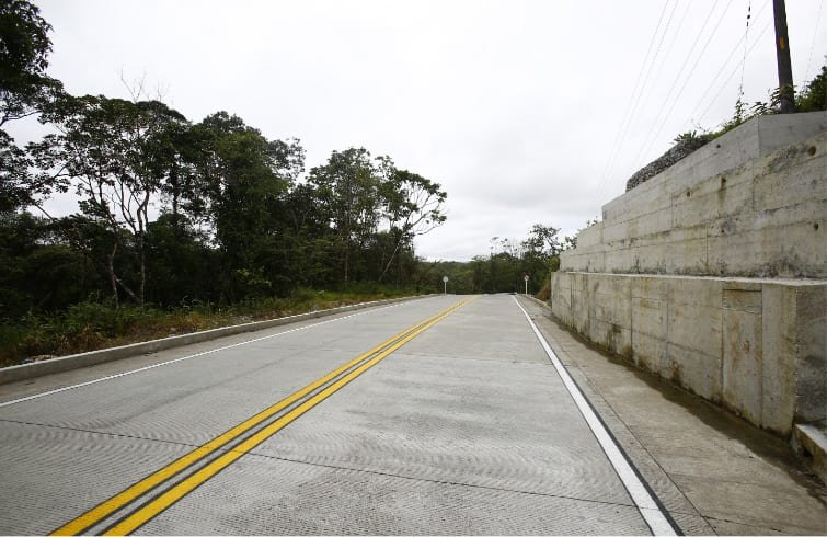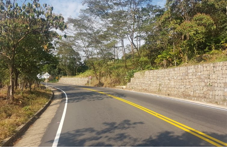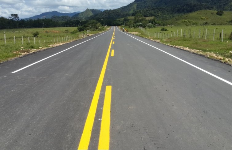 • Longitud total intervenida: 5,55 km de calzada sencilla, ancho de corona de 7,30 m y cunetas tipo L en concreto de 1,00 m.