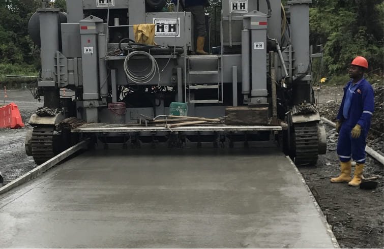 • Mejoramiento del alineamiento geométrico y pavimentación en concreto rígido de 19,66 km.